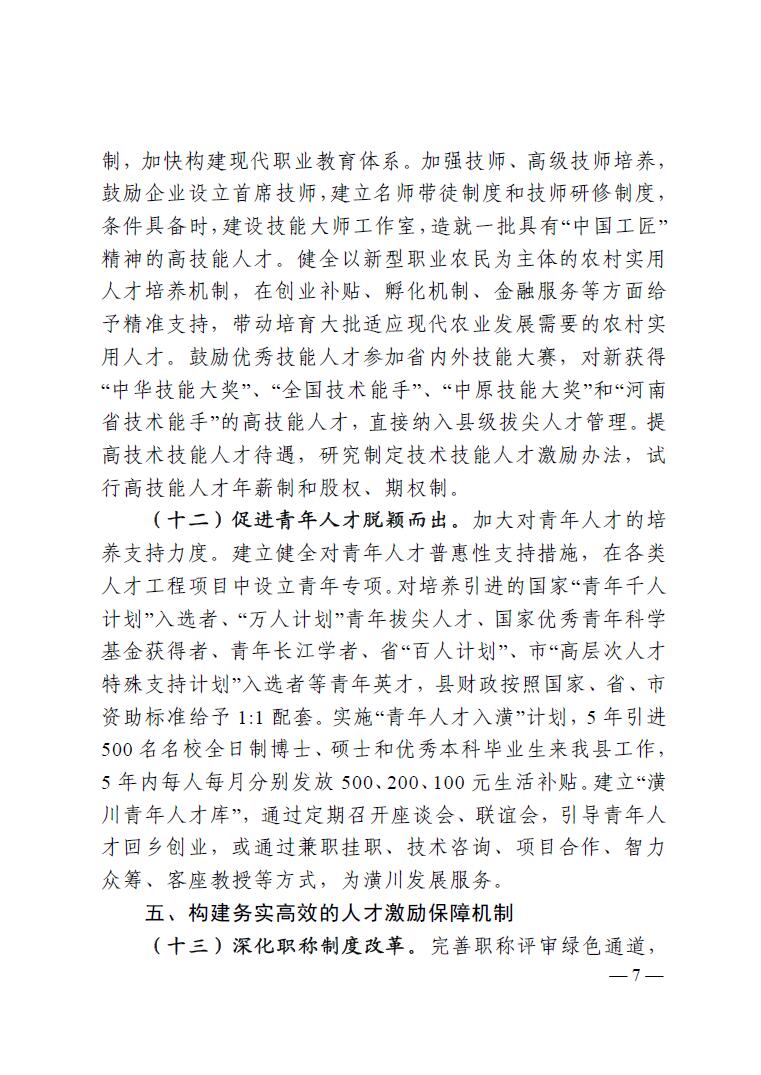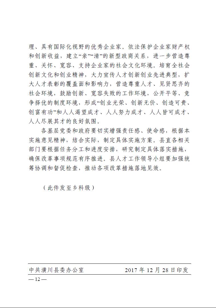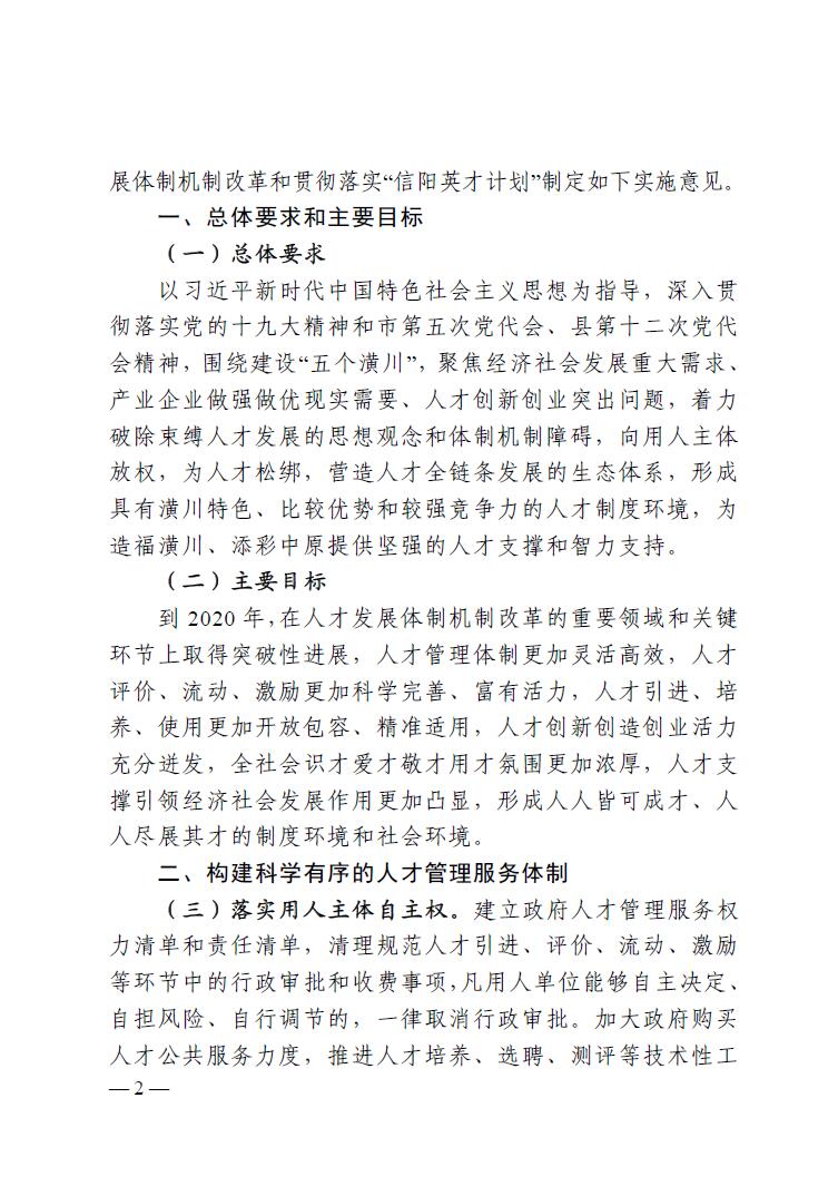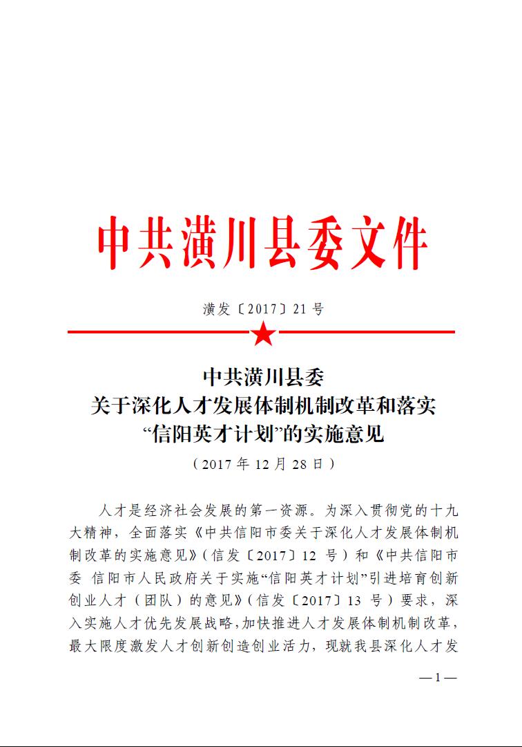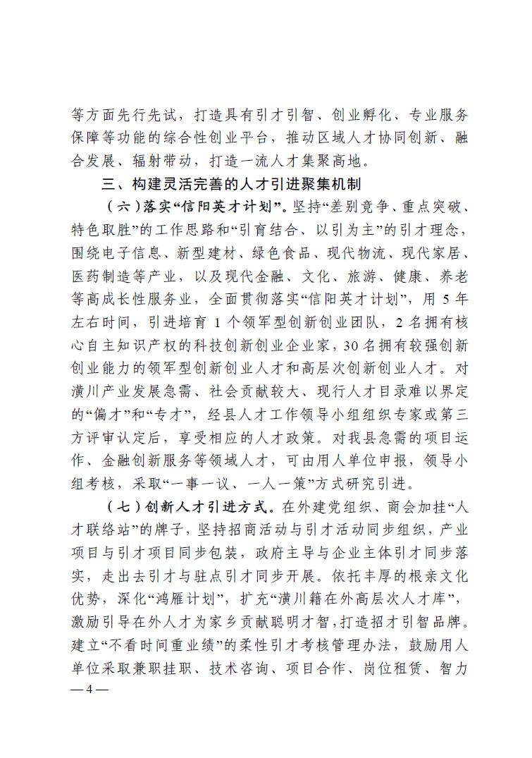 中共潢川县委 关于深化人才发展体制机制改革和落实 “信阳英才计划”的实施意见
