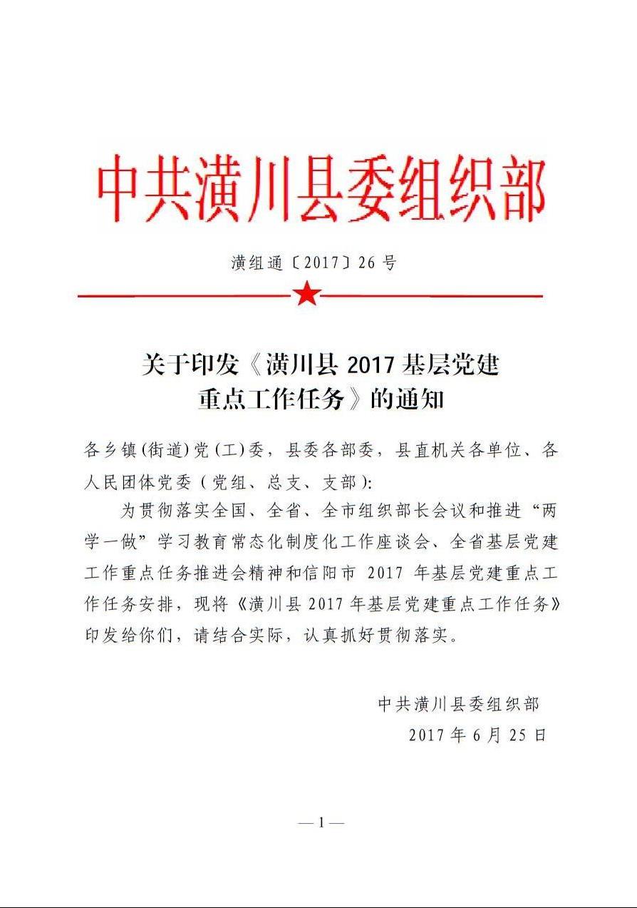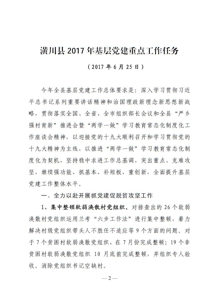 关于印发《潢川县2017 基层党建 重点工作任务》的通知