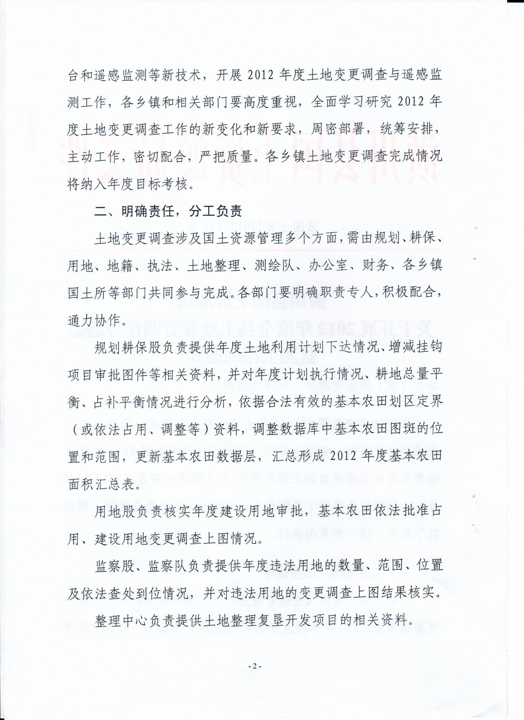 关于开展2012年度全县土地变更调查与遥感监测工作的通知