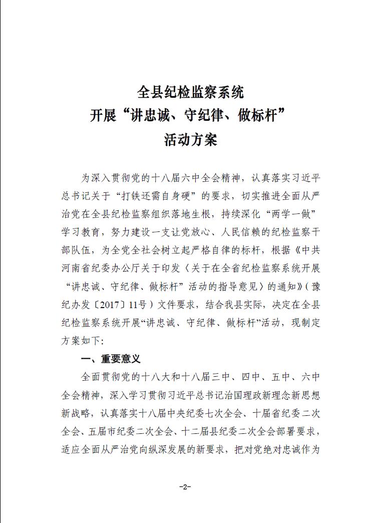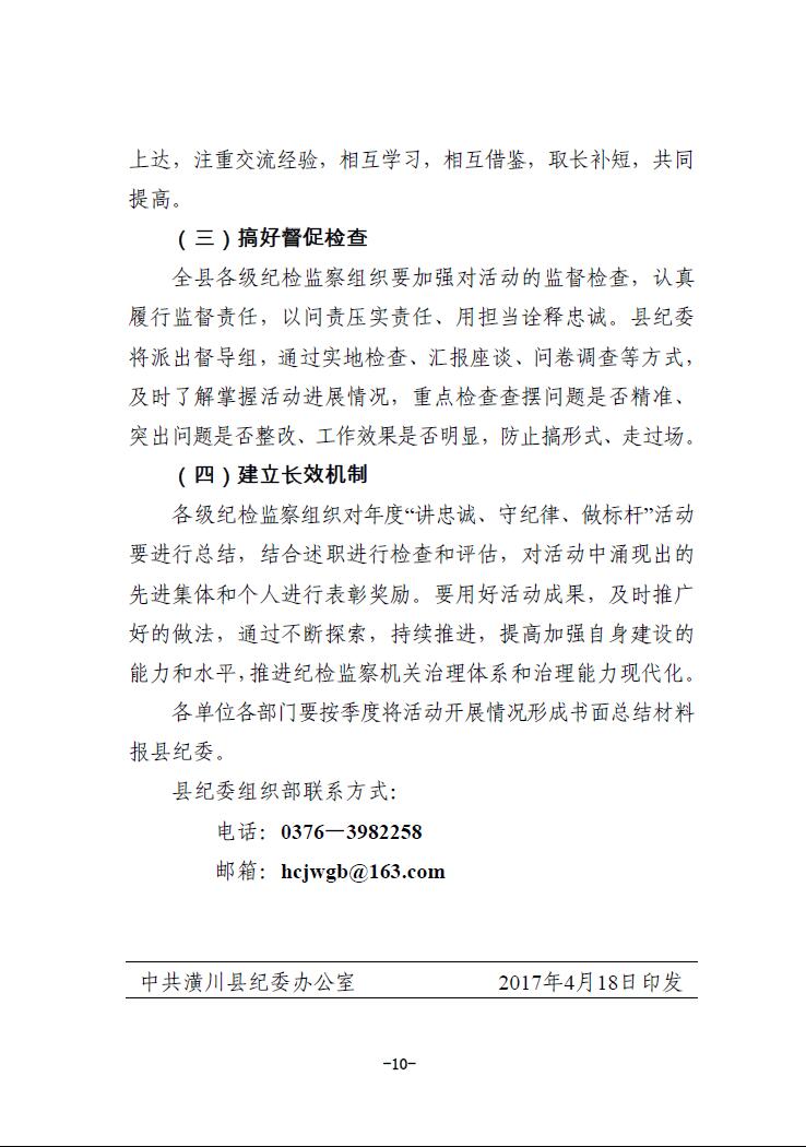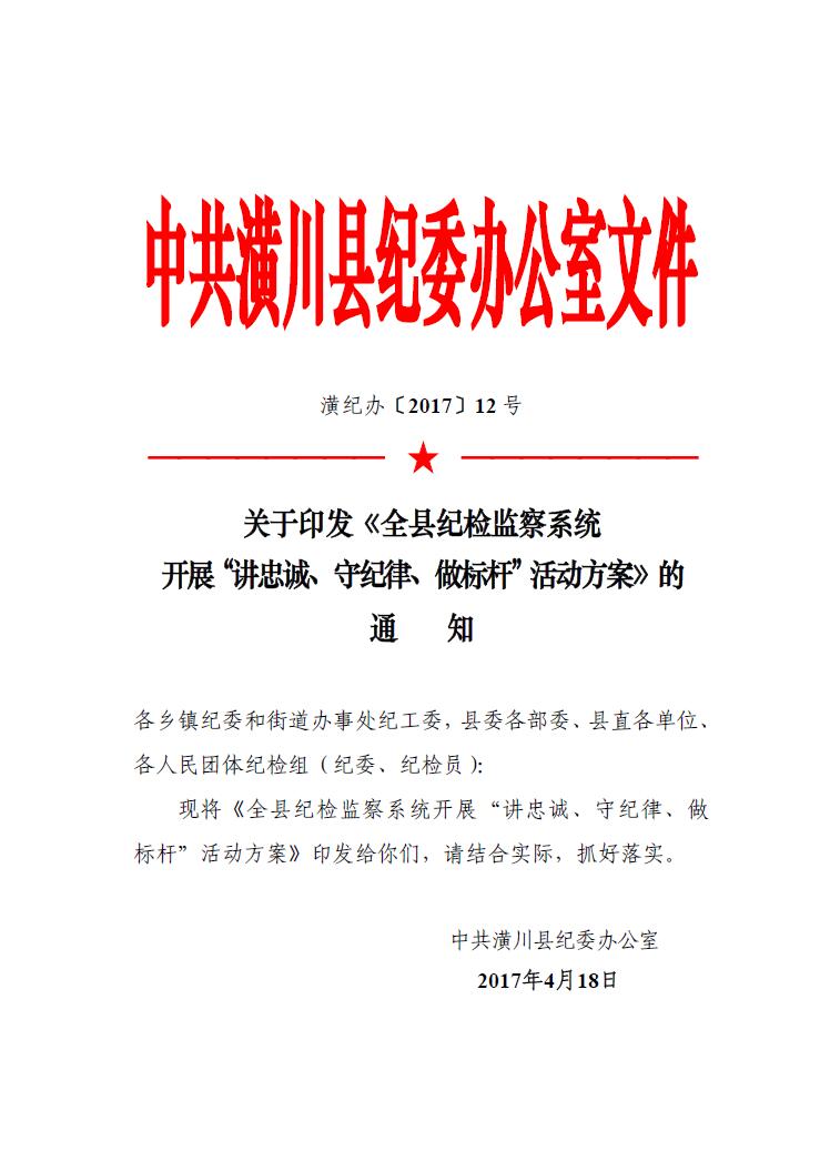 潢纪办[2017]12号(全县纪检系统开展讲忠诚守纪律做标杆活动方案通知)