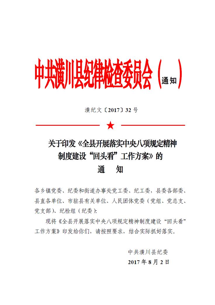 潢纪文[2017]32号(落实八项规定精神制度建设回头看方案通知)