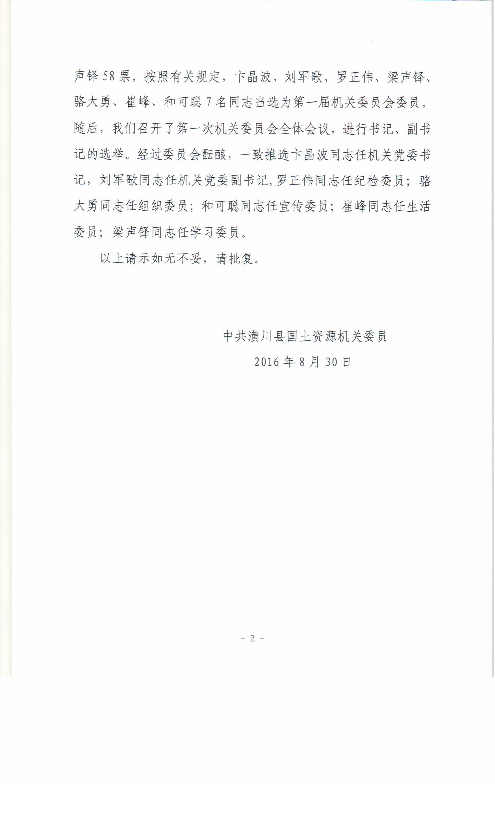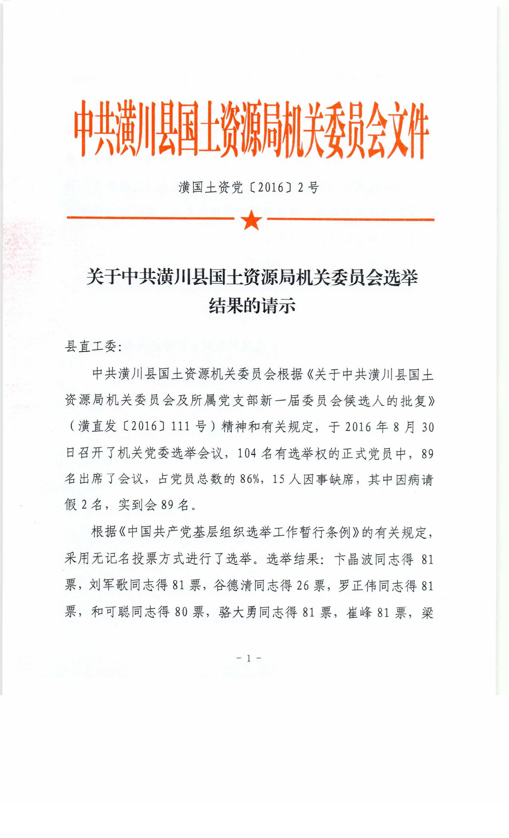 关于中共365asia机关委员会选举结果的请示