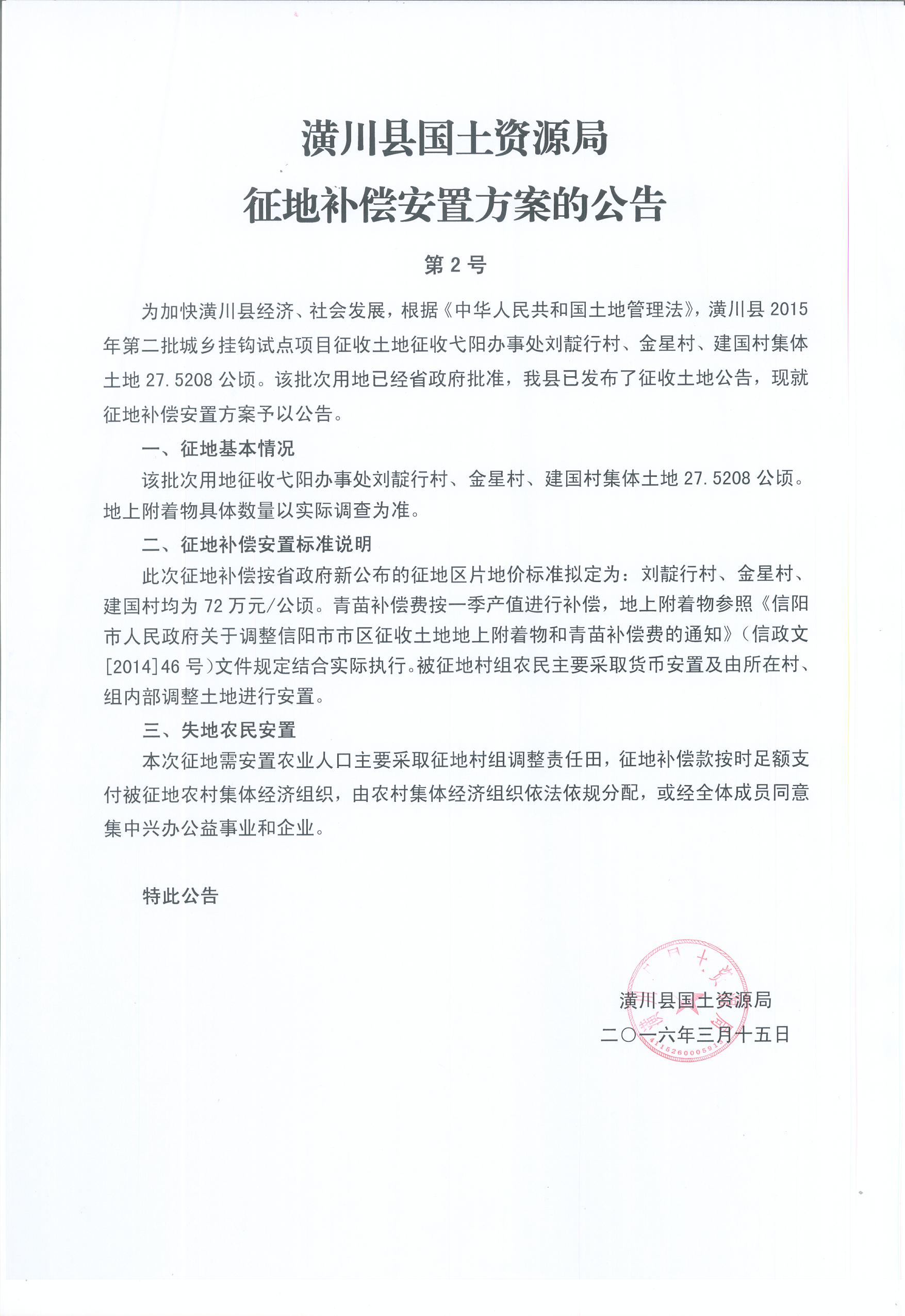 潢川县2015年度第二批城乡增减挂钩试点项目征收土地补偿安置公告