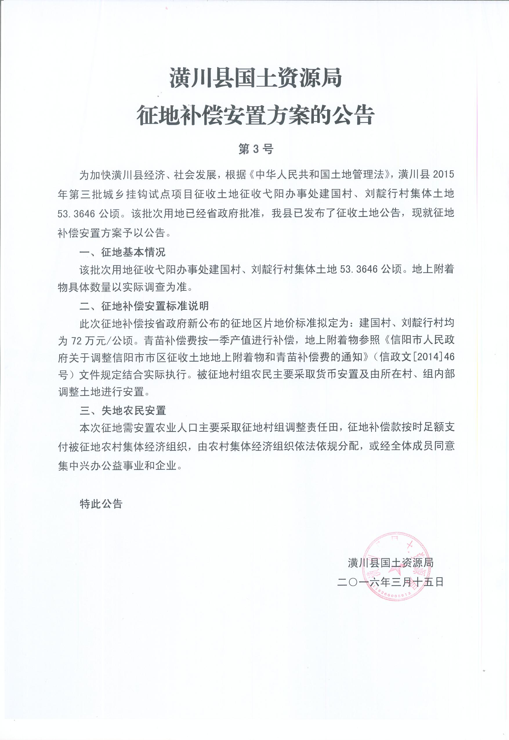 潢川县2015年度第三批城乡增减挂钩试点项目征收土地补偿安置公告