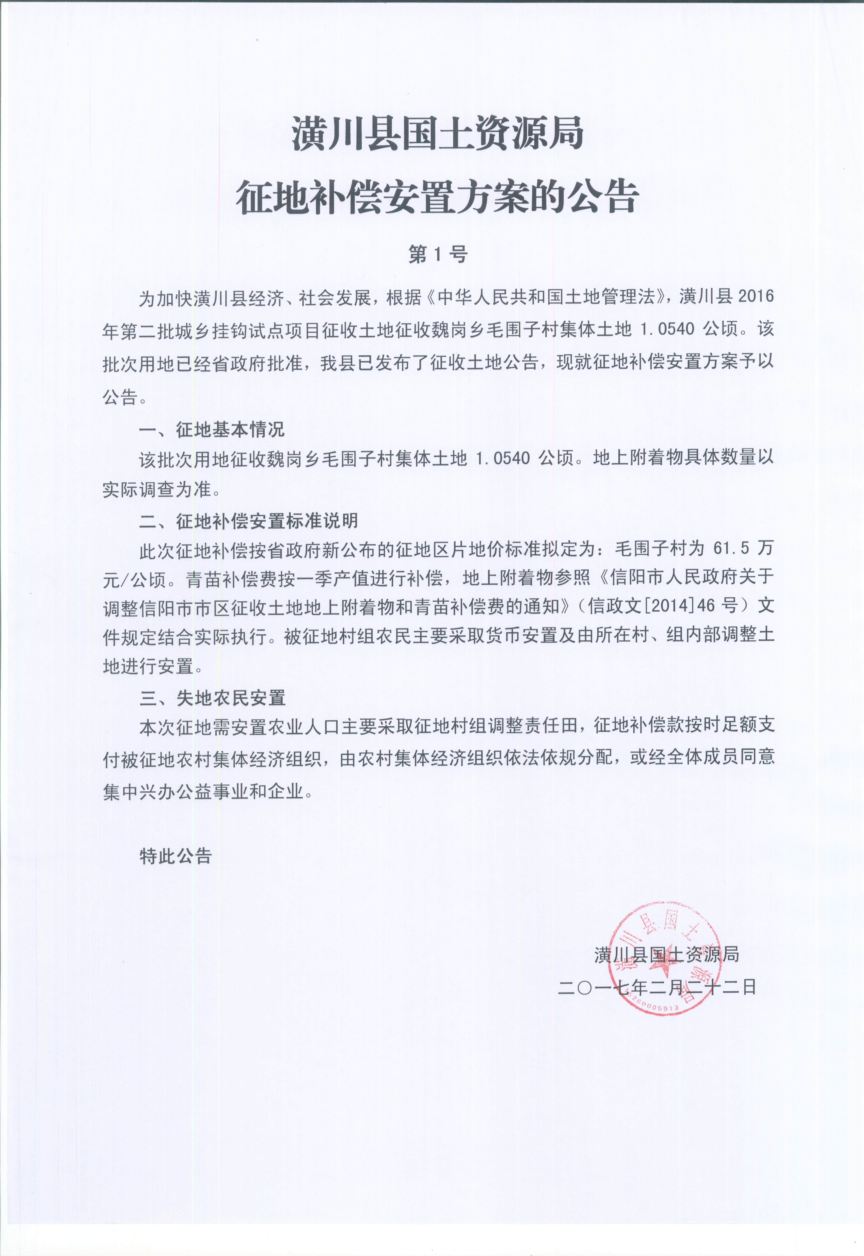 潢川县2016年度第二批城乡增减挂钩试点项目征收土地补偿安置公告