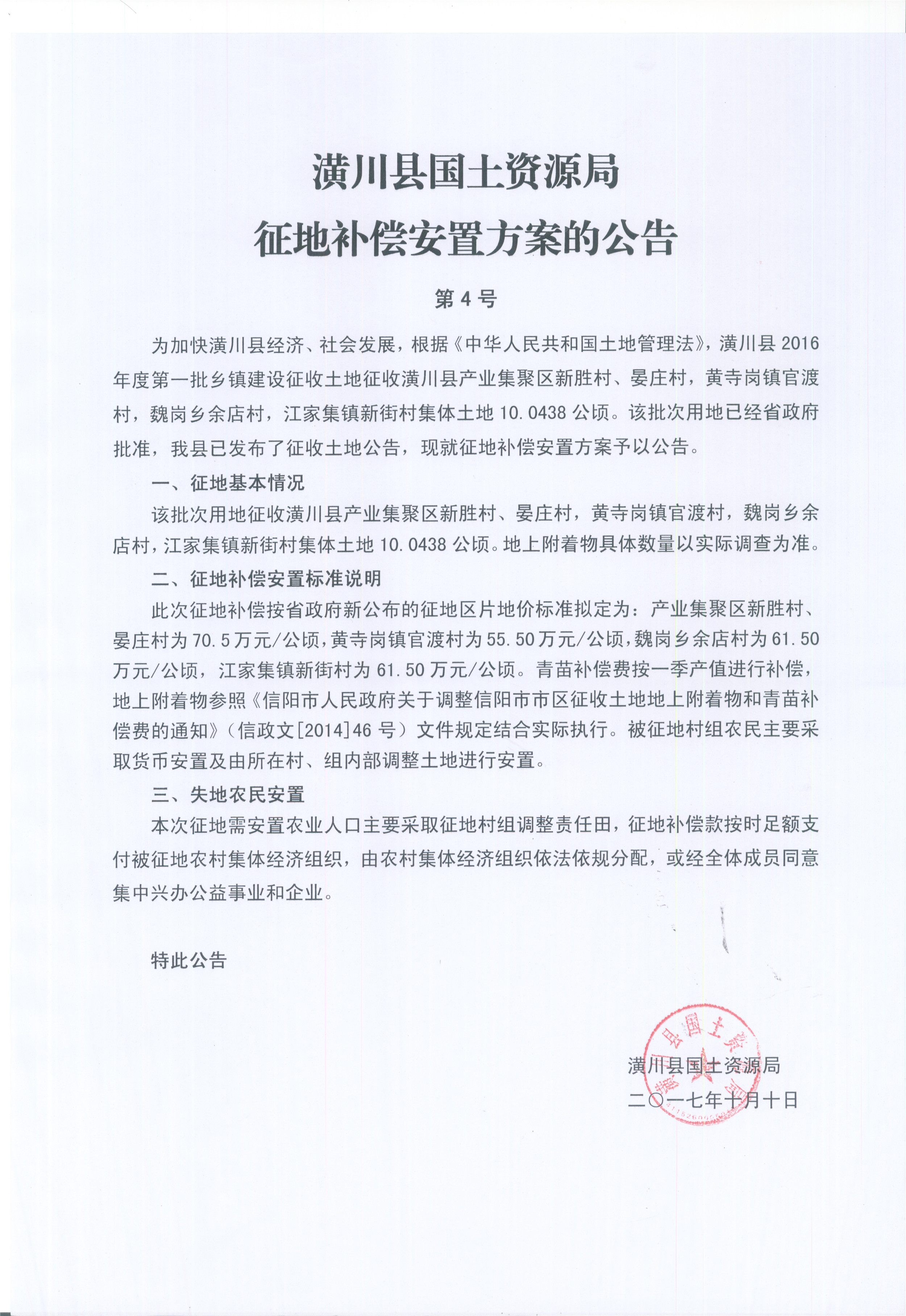 潢川县2014年度第五批城市建设用地征地安置补偿方案公告