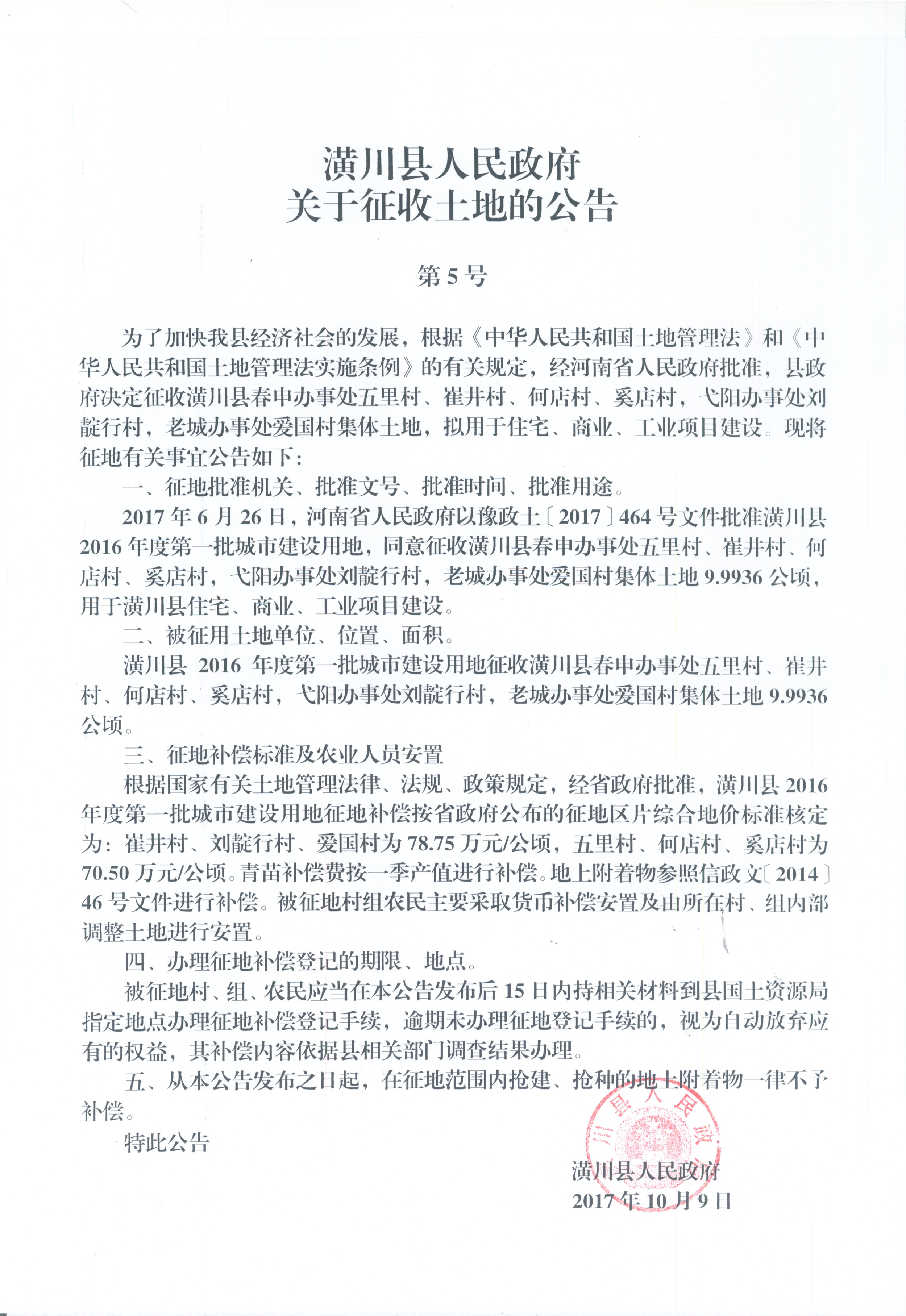 潢川县2015年度第一批城乡增减挂钩试点项目征收土地公告
