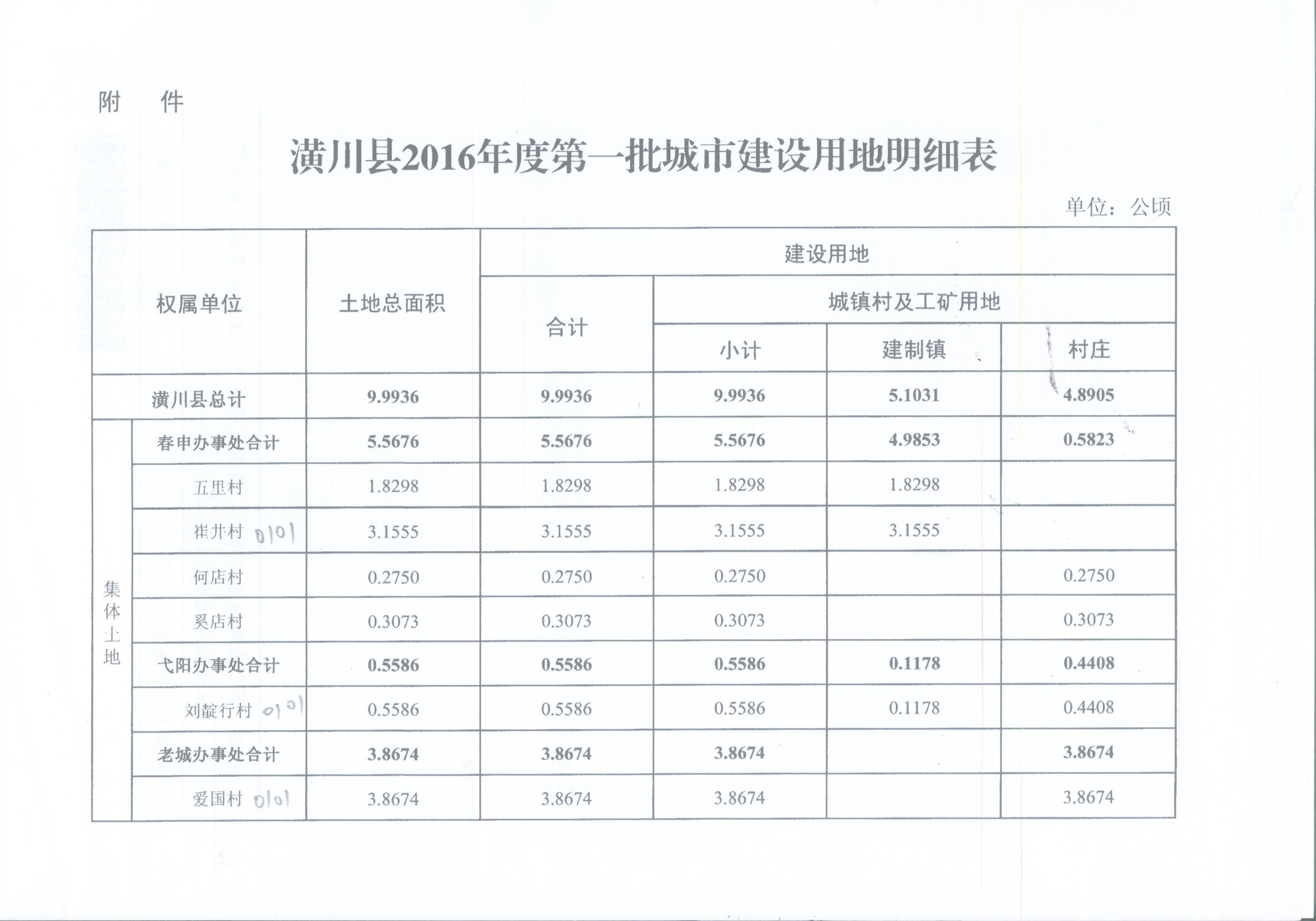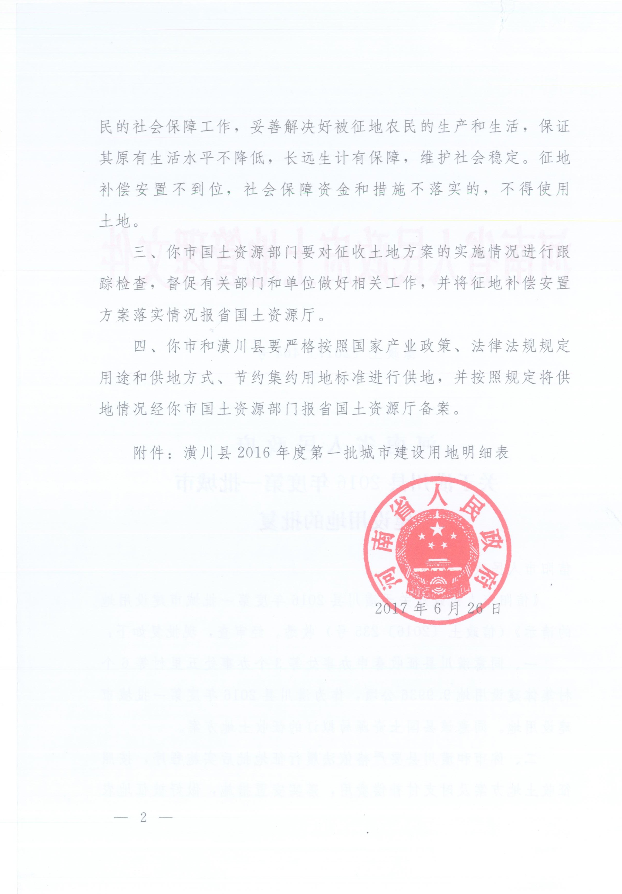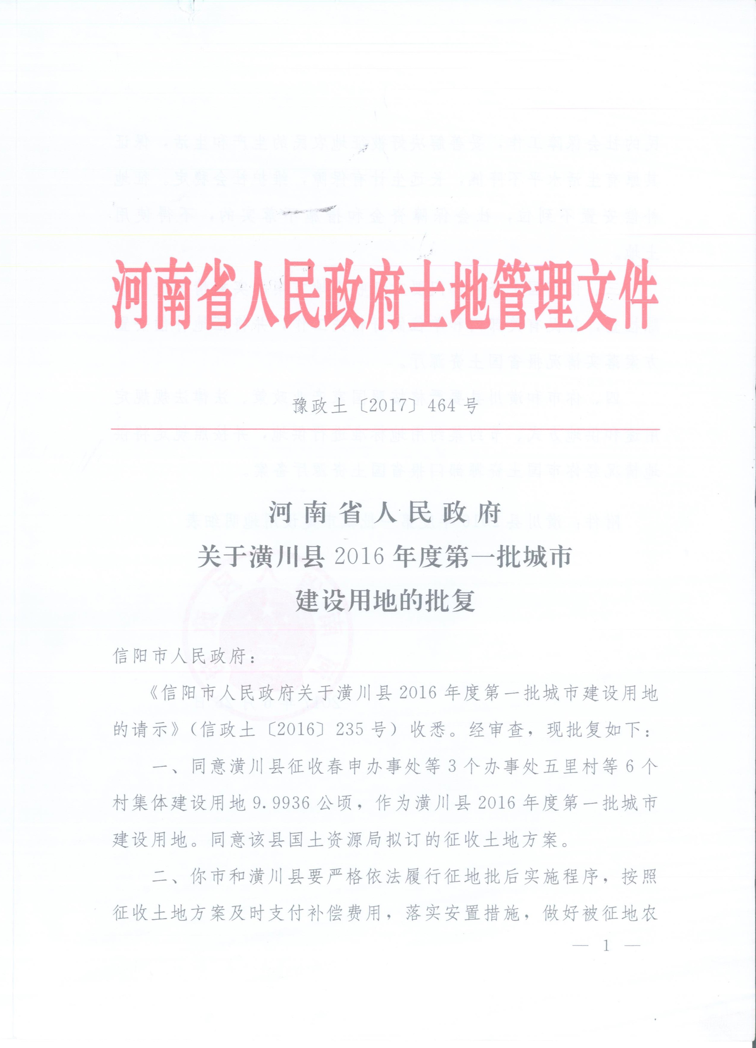 河南省人民政府关于潢川县2016年度第一批城市建设用地的批复