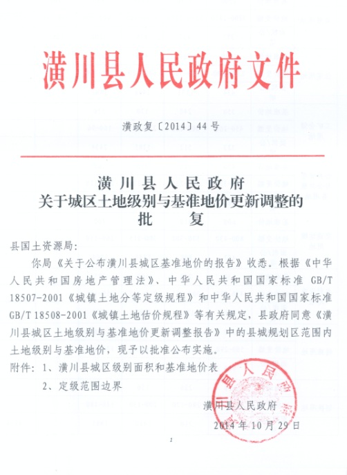 潢川县人民政府关于城区土地级别与基准地价更新调整的批复